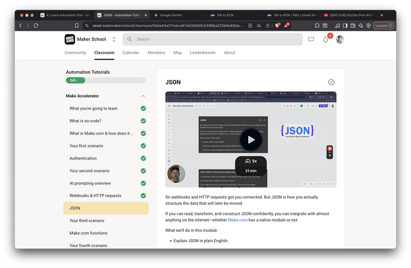 - Watch Make.com JSON tutorial (30 mins) ✅ DONE